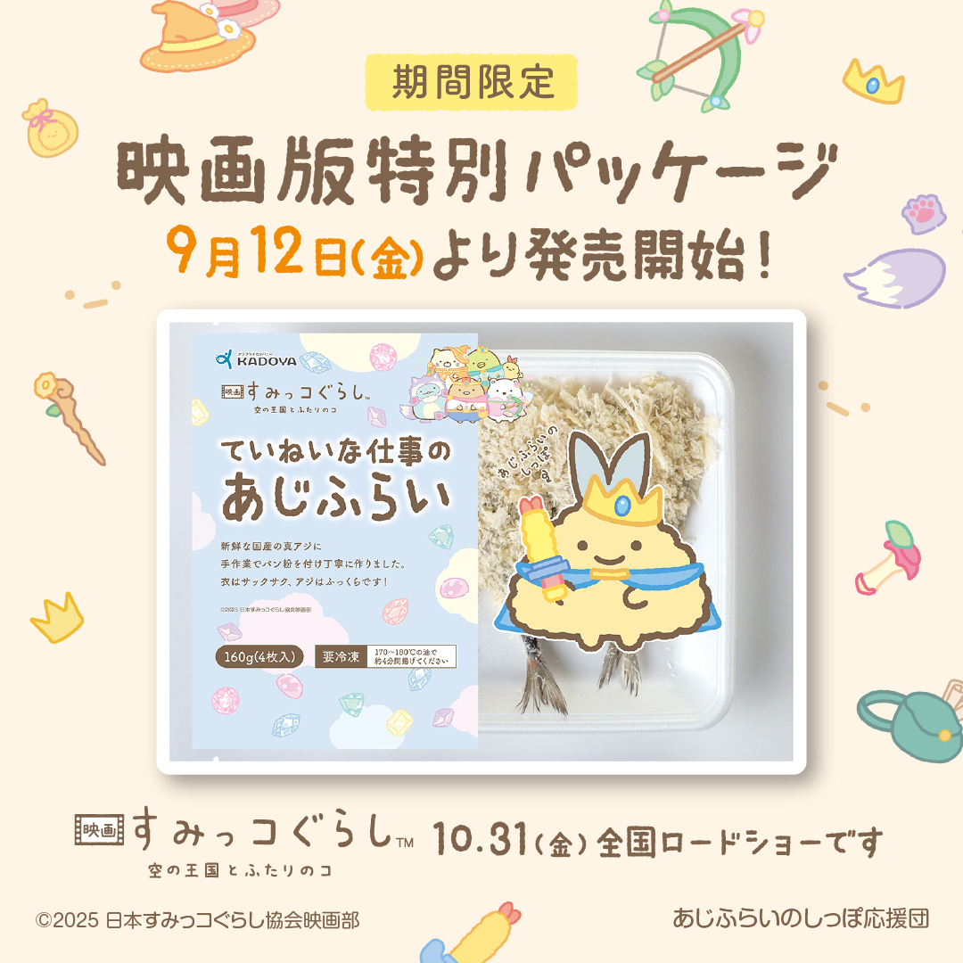 10月31日より公開の『映画 すみっコぐらし 空の王国とふたりのコ』とコラボレーションした商品、「【映画版】すみっコぐらし ていねいな仕事のあじふらい」 をついに発売開始いたしました!