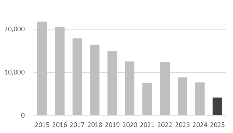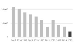 昨年も本ブログにて状況をお伝えしましたが、今年はさらに減少し、当社の見立てでは直近40年で最低水準になる可能性があります。